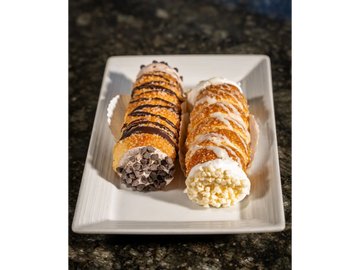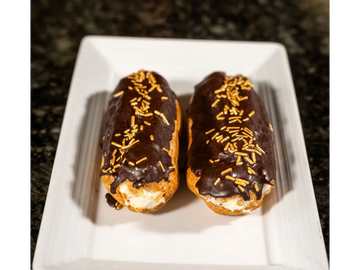 Cream-filled pastry topped with vanilla or chocolate glaze.