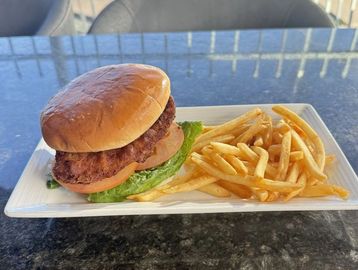 Juicy grilled beef patty served on a soft bun with classic toppings. A timeless favorite. Served with fries.
