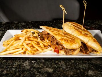Tender shredded beef simmered in Cuban sauce, served on fresh bread for a rich, savory bite. Served with fries.
